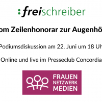 Das besprechen wir in unserer ersten Präsenzveranstaltung seit Monaten und der ersten offiziellen Kooperation der Vereine Freischreiber Österreich und Frauennetzwerk Medien am 22.Juni ab 18 Uhr im Presseclub Concordia mit